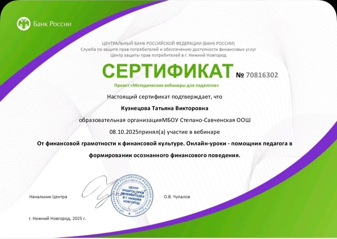 С 8 сентября по 15 ноября 2025 года проводится VI этап Всероссийской просветительской эстафеты «Мои финансы».