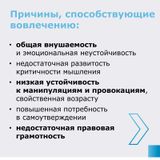 9. Говорить об ответственности несовершеннолетних по нахождению их в различных деструктивных группах в сети Интернет, в которых могут быть опубликованы неприличные фотографии обучающихся, касающихся нарушения их прав морально - нравственных ценностей.
