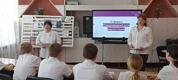 19 января советник директора по патриотическому воспитанию Икрянникова Л. П. совместно с учителем русского языка Макаровой О. А. провела в 5-9 классах открытый урок на тему «Международный день родного языка».