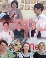 Советник директора по воспитанию и взаимодействию с детскими общественными объединениями Икрянникова Л. П. совместно с активистами Движения Первых