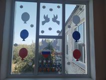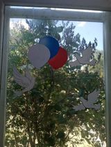 Педагоги, советник директора по воспитанию совместно с учениками украсили окна школы символикой нашей страны, флажками, цветами, шарами и рисунками.