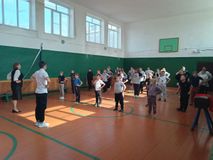 Завершилась череда спортивных мероприятий, посвящённый Всемирному дню здоровья, который проходил в нашей школе всю неделю. Кульминацией стало яркое событие — флешмоб "Зарядка от Первых". Учащиеся вместе с педагогами и родителями выполняли утреннюю зарядку под руководством активистов Движения Первых и советника директора по воспитательной работе Л.П. Икрянниковой.