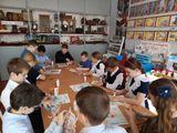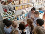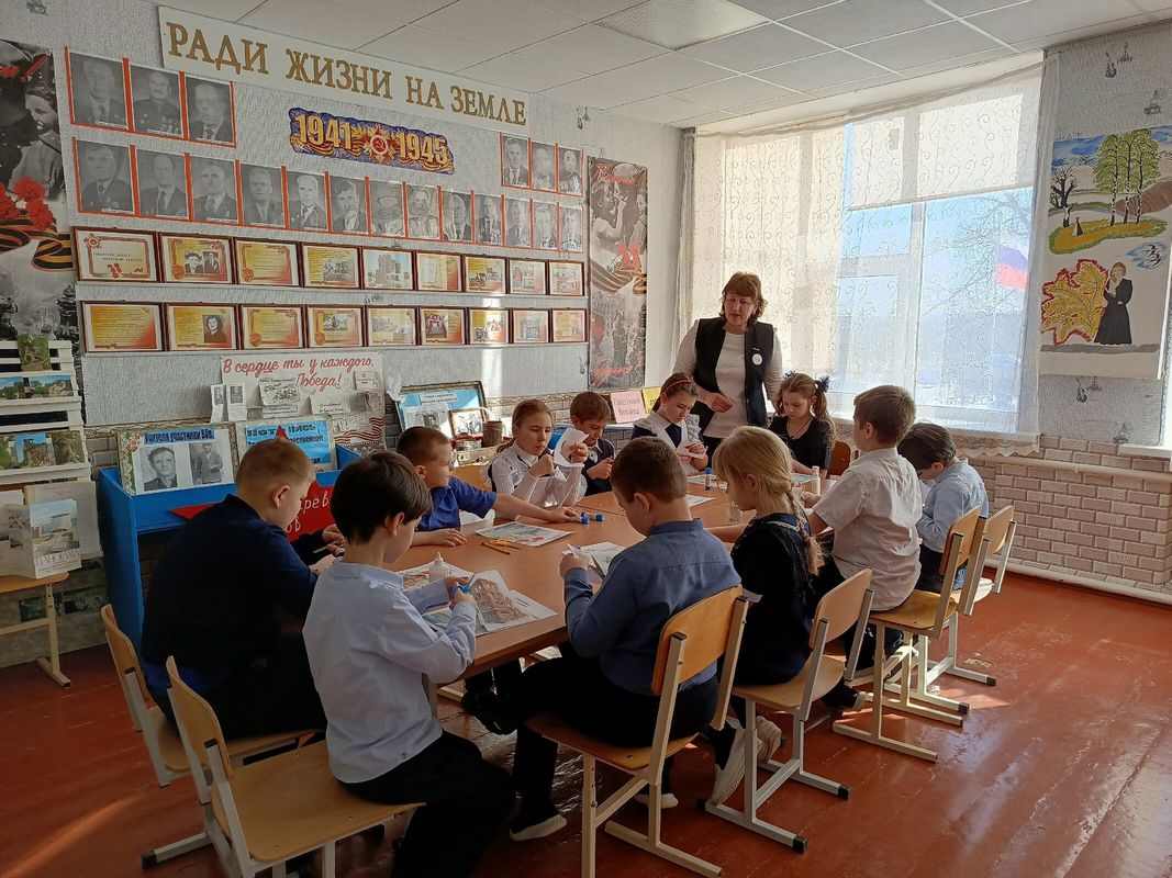 В ходе урока дети посетили первую станцию - школьный краеведческий музей, рассмотрели мини - экспозицию " Предметы военного времени", на второй станции послушали голос диктора Левитана.