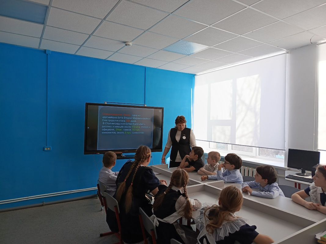2 февраля советник директора по воспитанию Икрянникова Людмила Павловна совместно с учителем истории Лесные Верой Борисовной провели урок памяти «Сталинград – 200 дней мужества».